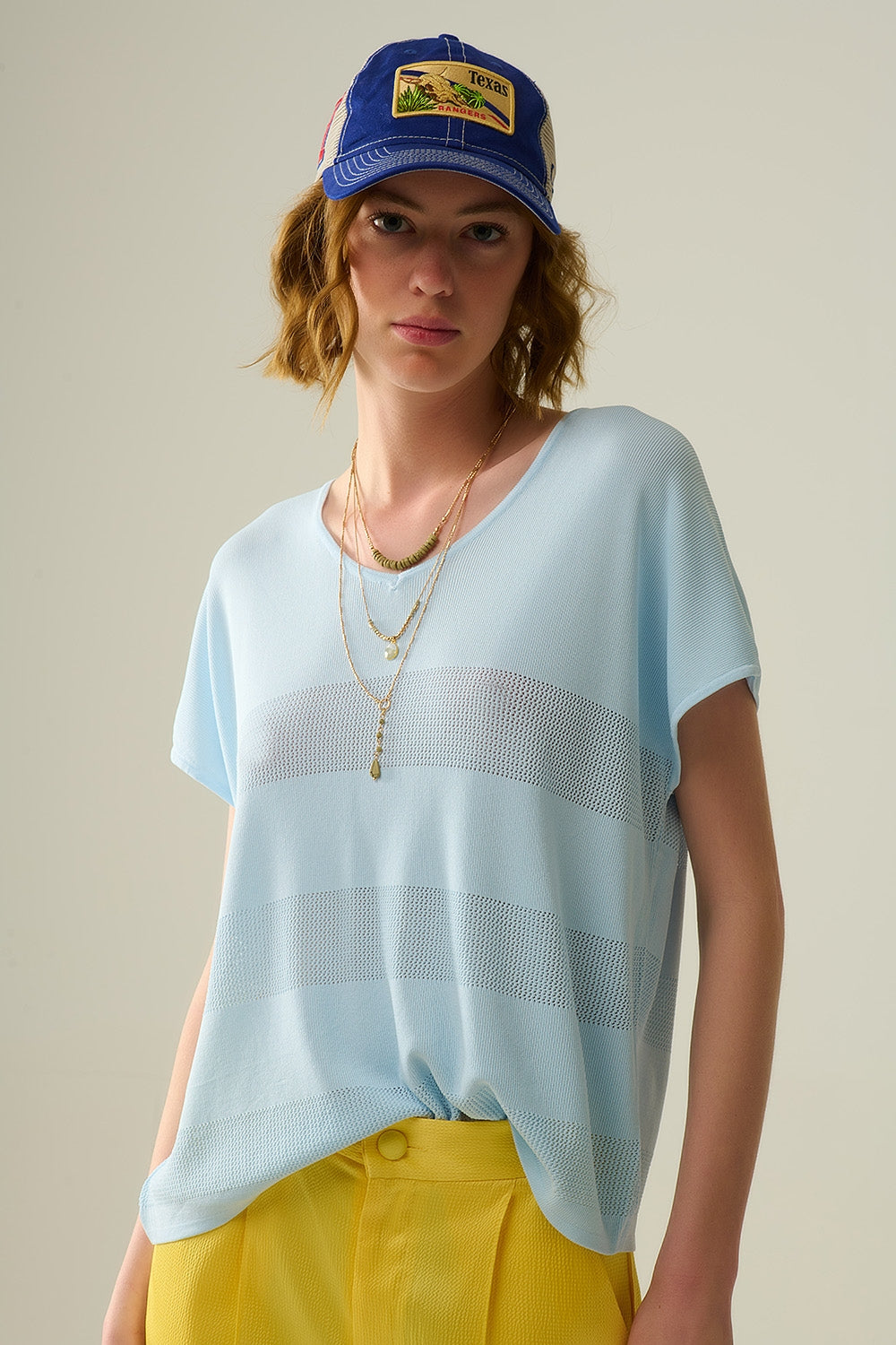 Subcategorie: Truien. Kraag: V-hals. Mouwen: Korte mouwen. Print: Streepmotief. Pasvorm: Relaxte pasvorm. Stijl: Dagelijks. Materiaal: Fijngebreid. Valt normaal qua maat. U.