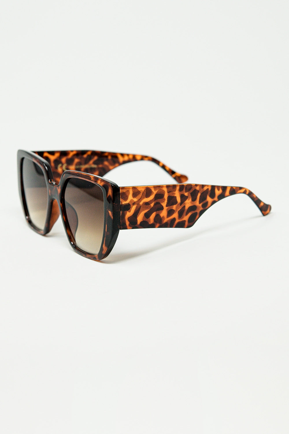 Bruine pin-up zonnebril met geometrisch design en kattenogen