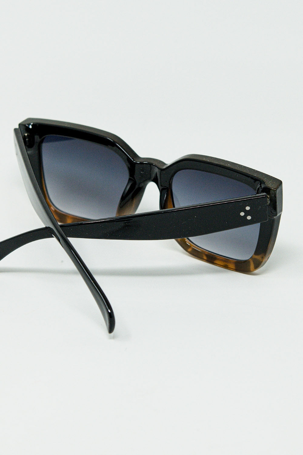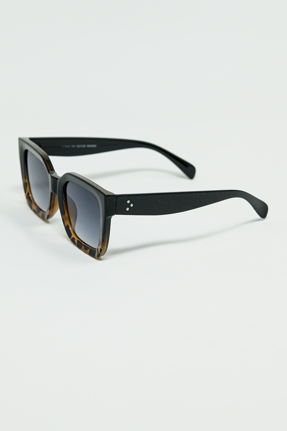 Bruine vierkante zonnebril met kleurverloop in dierenprint