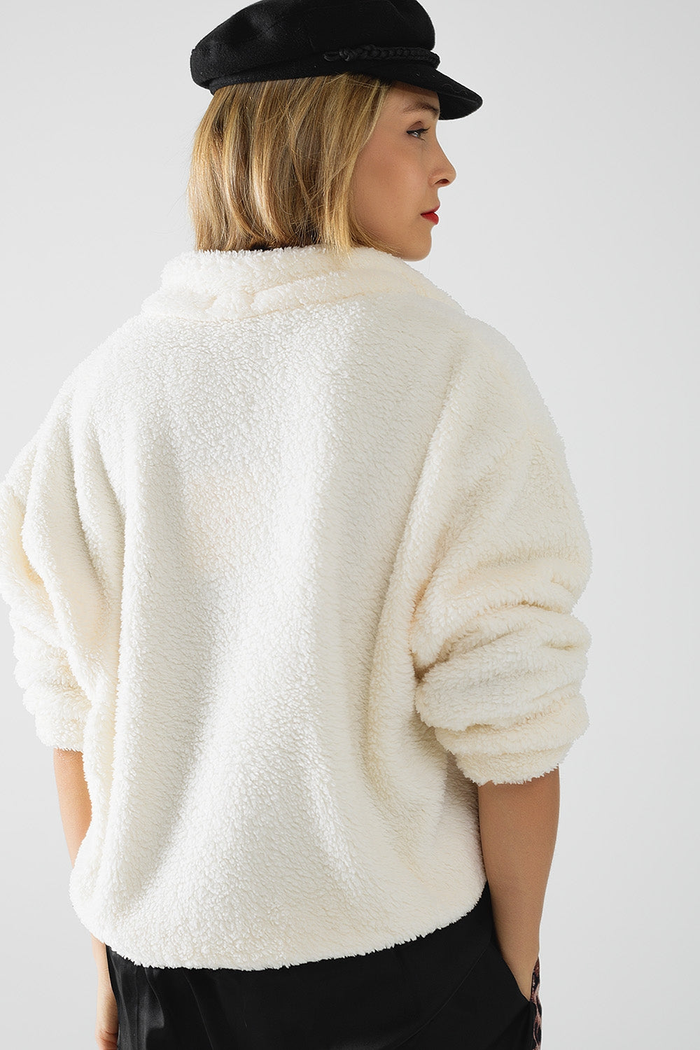 ecru pluizige v-hals trui