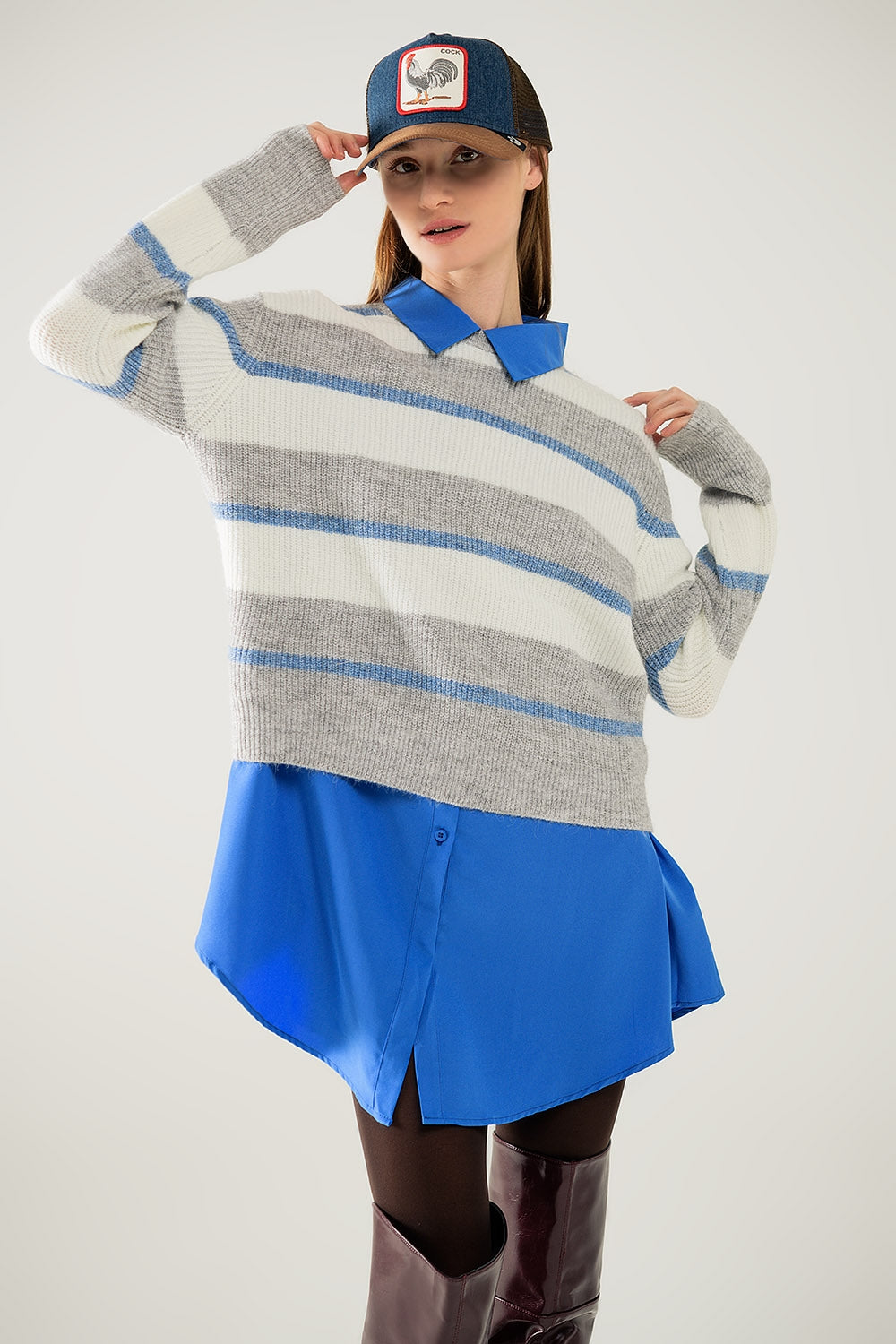 Subcategorie: Truien. Kraag: Ronde hals. Mouwen: Lange mouwen. Print: Strepenmotief. Pasvorm: Relaxte pasvorm. Stijl: Dagelijks. Materiaal: Zacht breisel. Valt normaal qua maat. S.