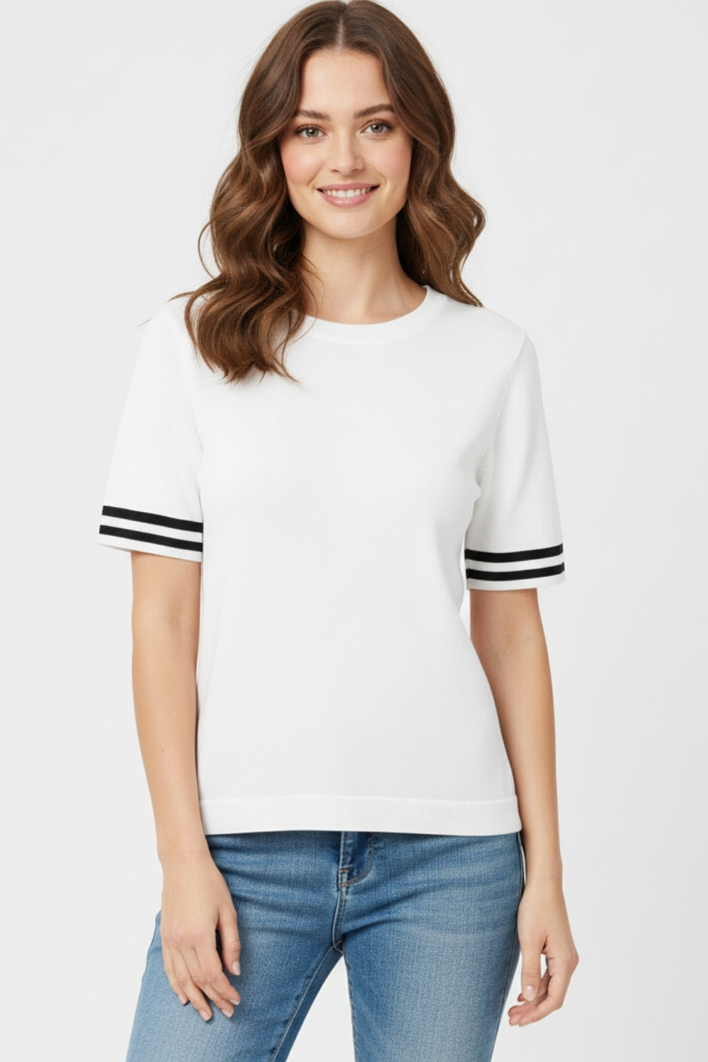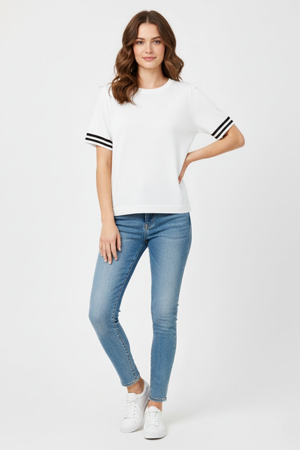 Relaxte pasvorm trui in wit met zwart contrastdetail
