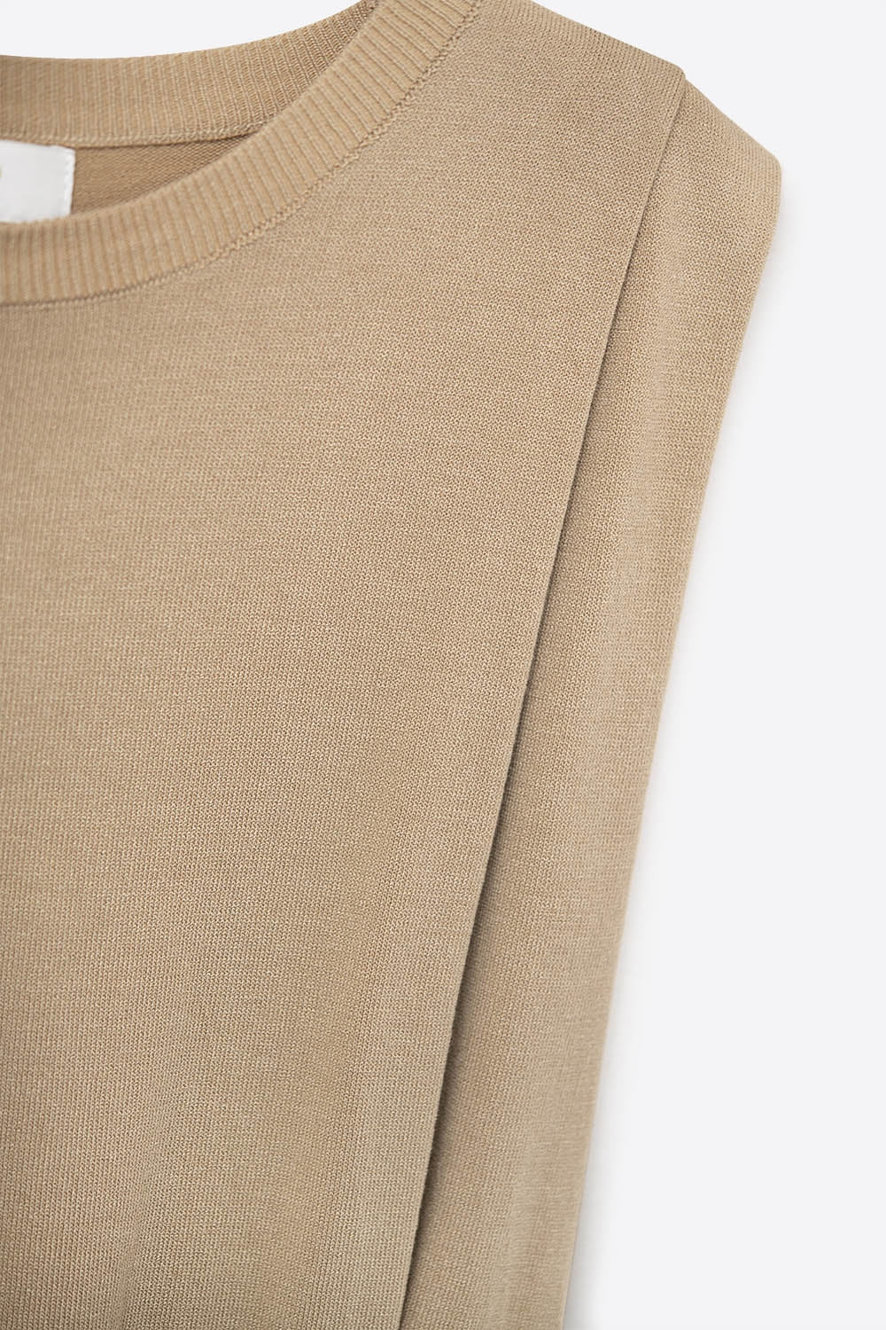 Mouwloos gebreid topje met gedrapeerde schouders in camel