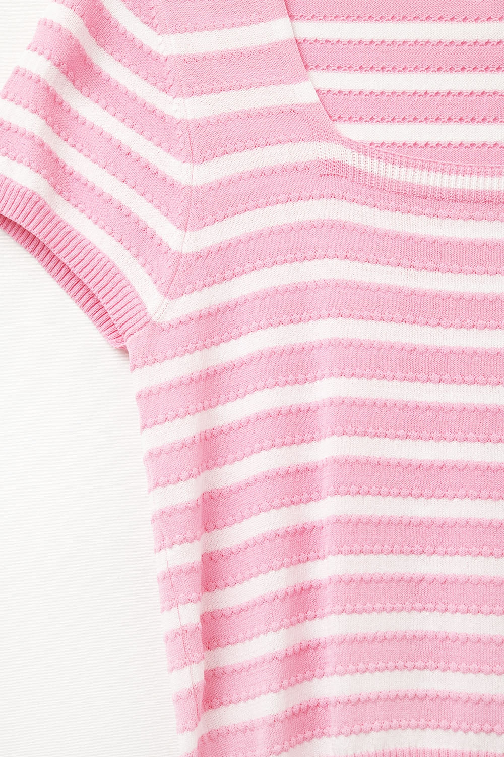 Gestreepte trui met vierkante hals in roze en wit