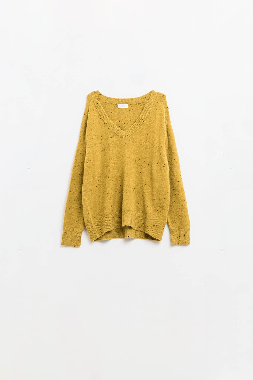 V-hals relaxed fit gespikkelde trui in mosterdgeel