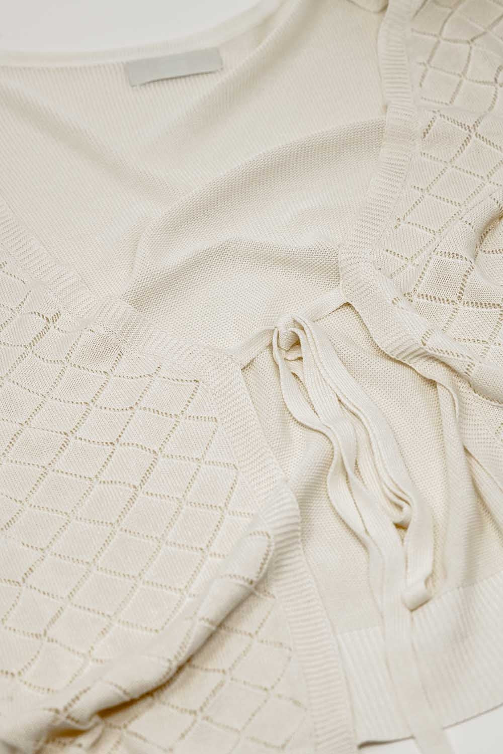 Beige Cardigan with Argyle Print and Tie Closing