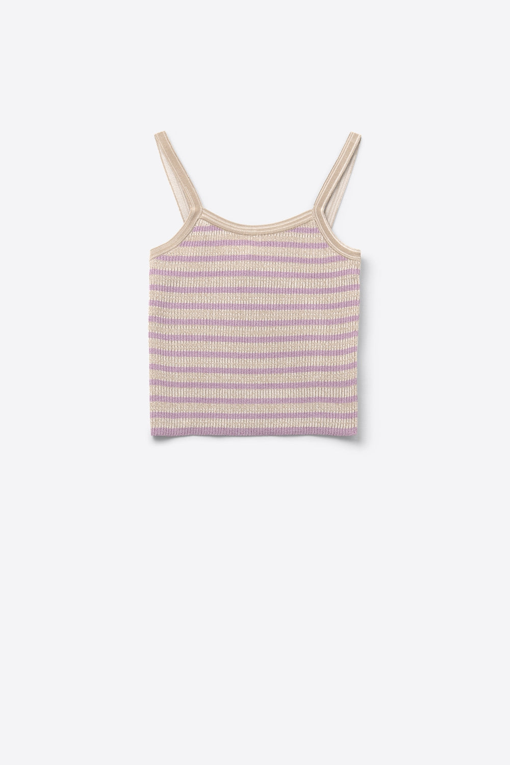 Subcategory: Top. Sleeves: Adjustable straps. Print: Stripe design. Fit: Bodycon fit. Style: Daily. Fabric: Ribbed knit. runs true to size. S.