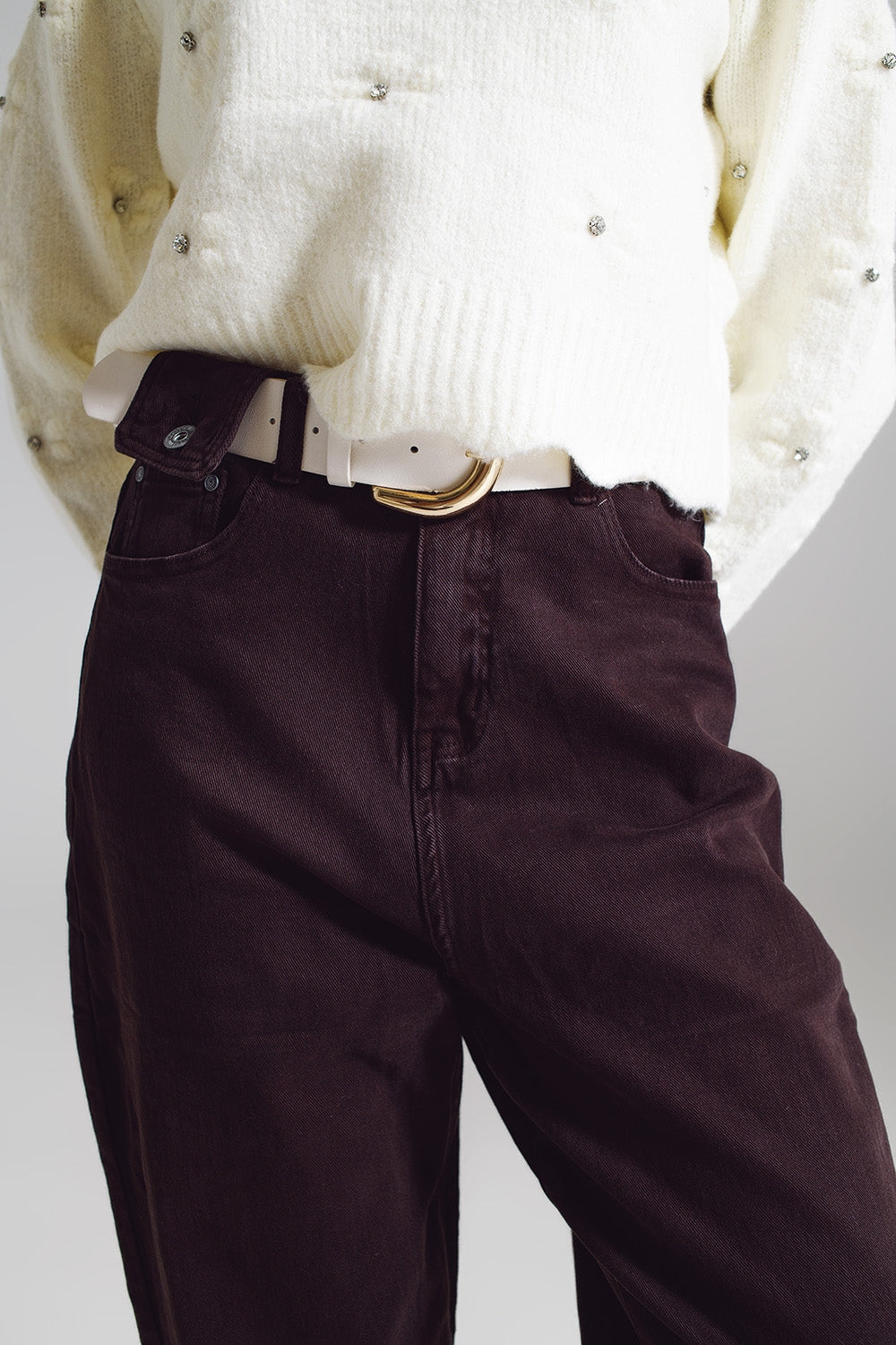 Subcategory: Pants. Fit: Relaxed fit. Leg: Boyfriend. Style: Urban. Jean type: Straight fit. Fabric: Stretch denim. Pockets: Side and back pockets. Zipper: Zip side. Seam: Turn-up seam. runs true to size. S.