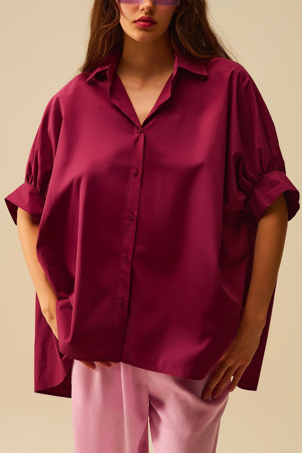 Length: Asymmetrical length. Subcategory: Blouse. Sleeves: Ruched volume sleeves. Fit: Oversized fit. Style: Daily. Fabric: Poplin. Zipper: Button placket. runs big. S.