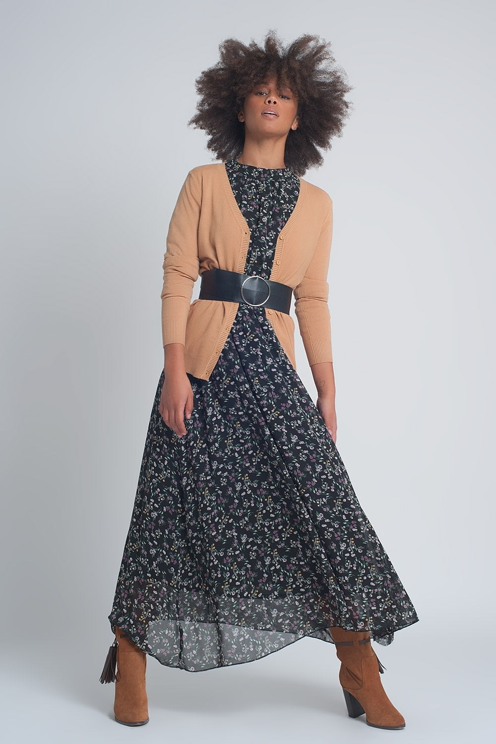 Button front cropped knit cardigan in camel