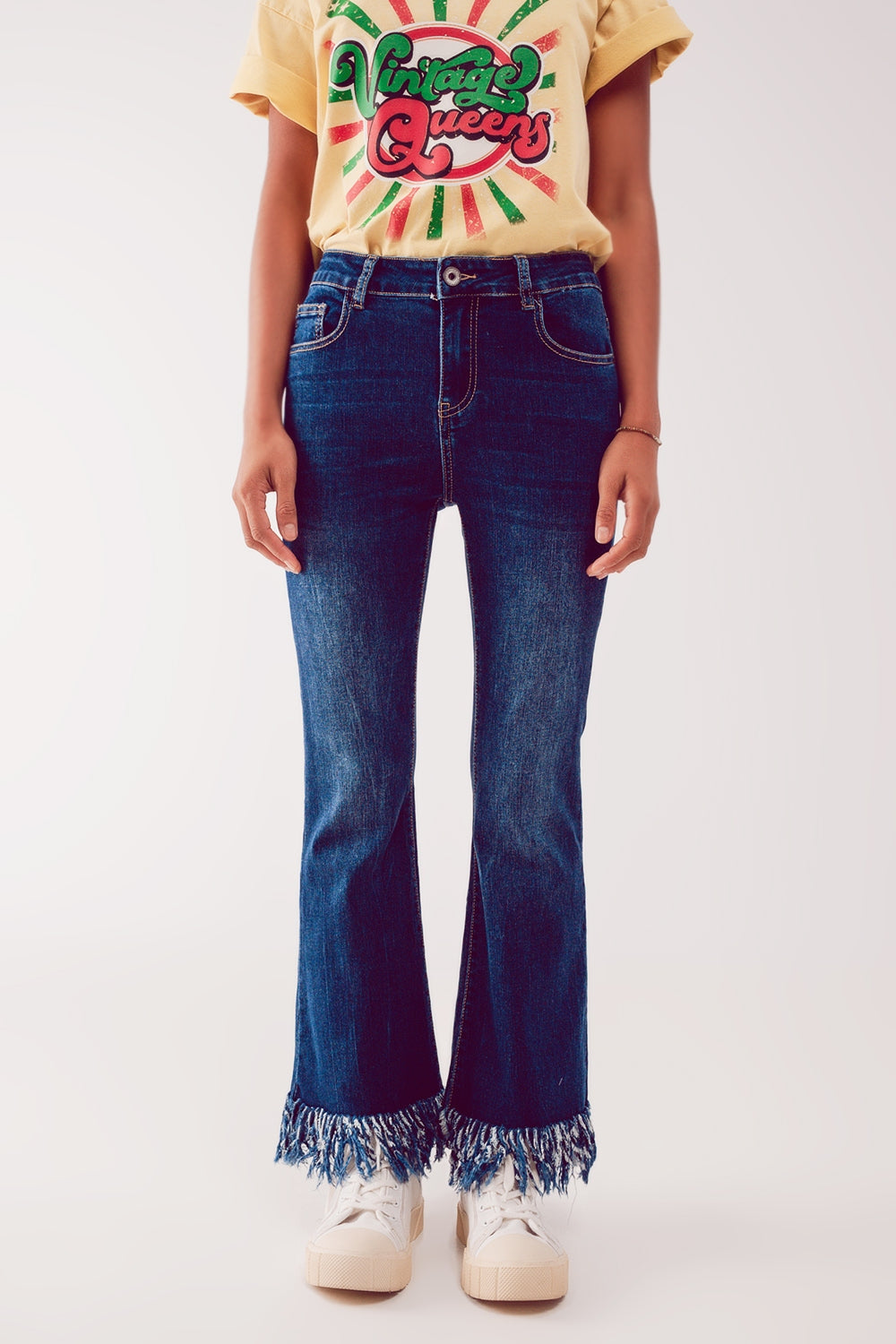 Subcategory: Jeans. Fit: Flared. Leg: Flare. Style: Casual. Jean type: Basic. Detail: Fringe trim . Fabric: Stretch denim. Pockets: Five pockets. Zipper: Zip fastening. Seam: Frayed ends. Product details: Functional pockets. runs true to size. S.