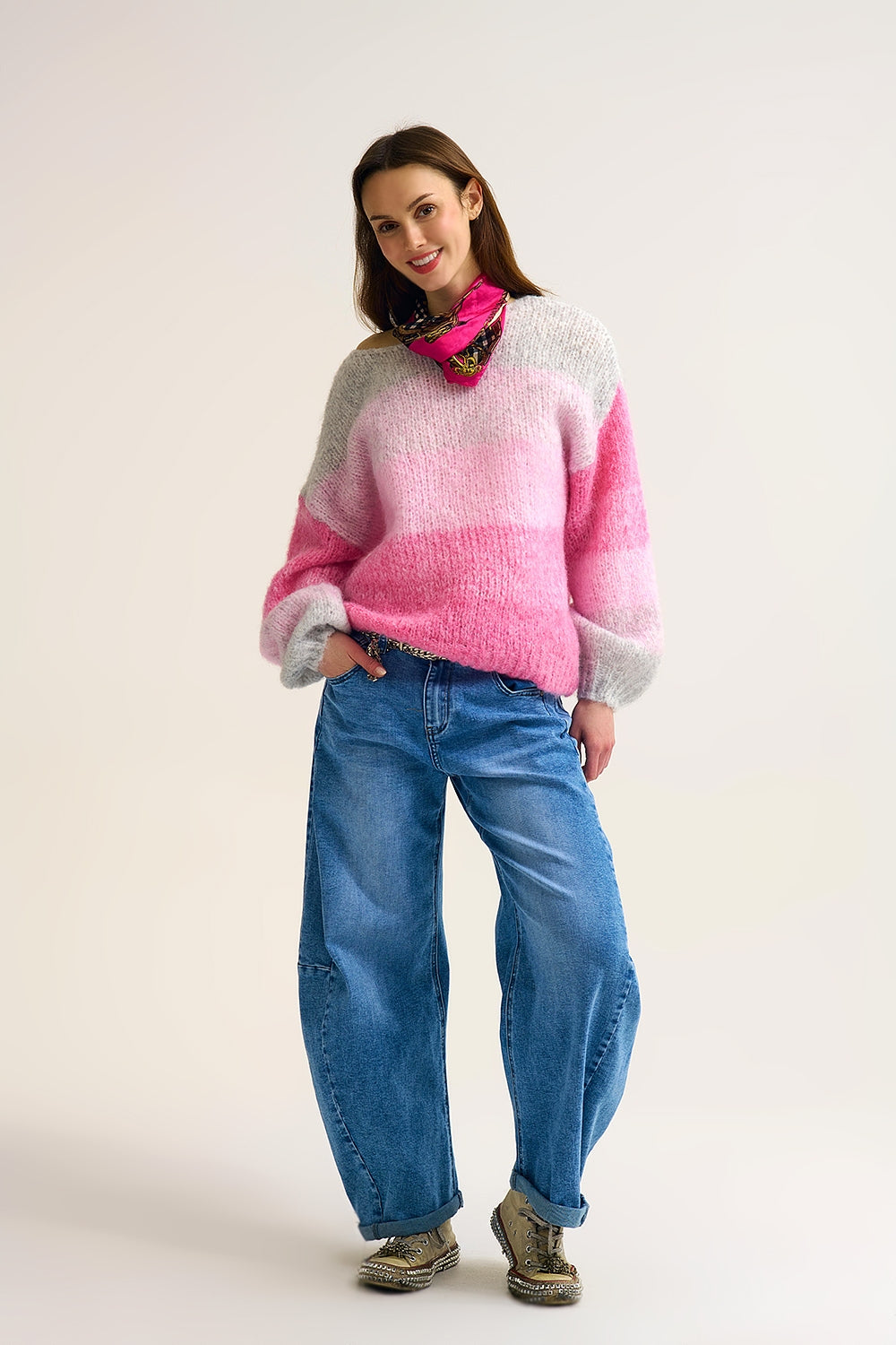 Fluffy Gradient Knit Sweater with Soft pink Color Transitions