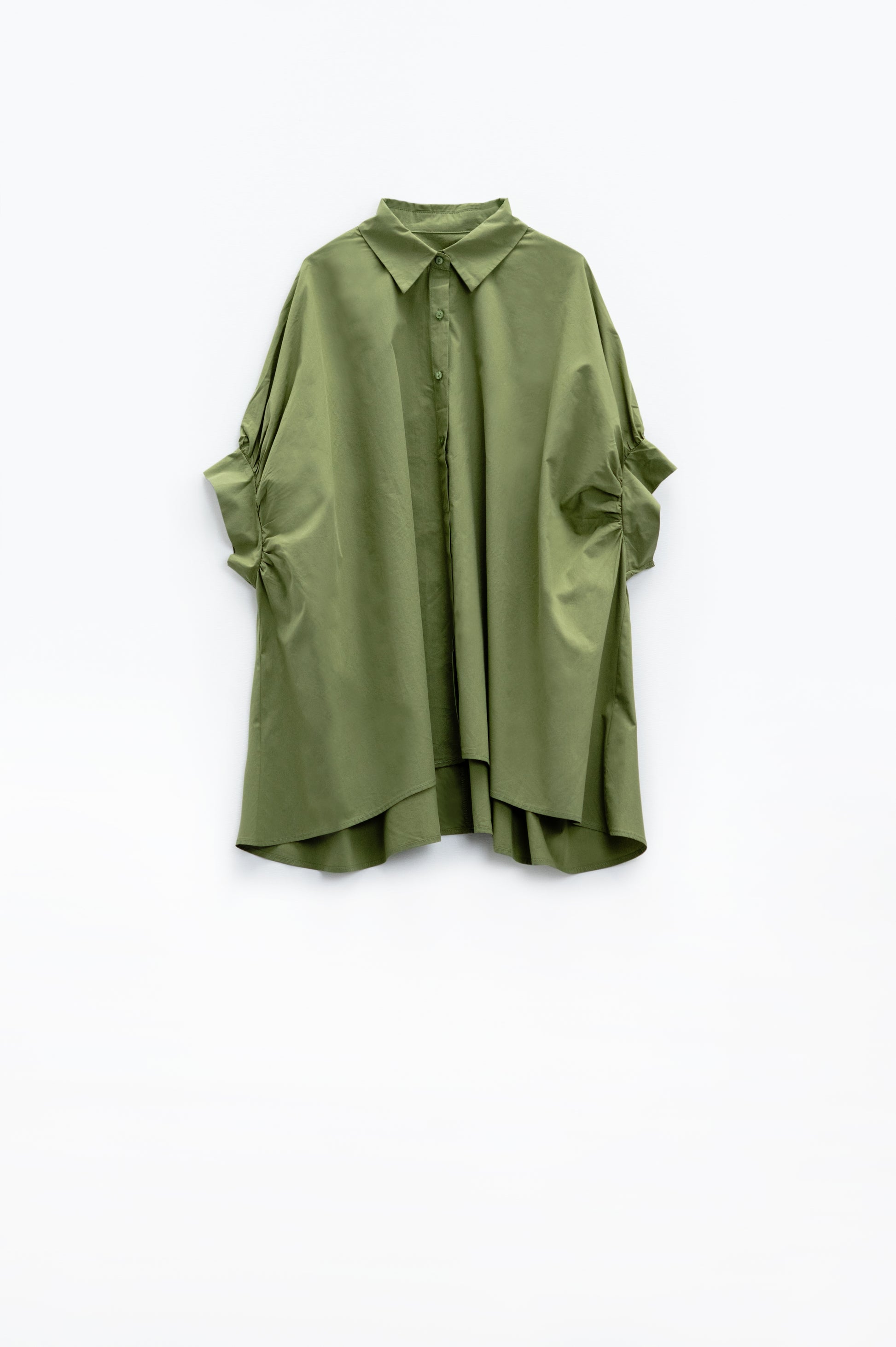 Subcategory: Blouse. Collar: Polo collar. Sleeves: Short Sleeves. Fit: Oversized fit. Fabric: Poplin. Zipper: Button placket. runs big. S.
