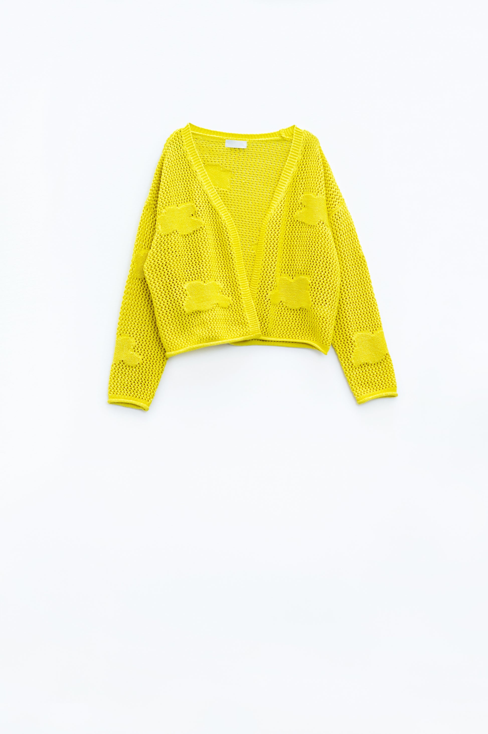 Knitted Crochet Cardigan With Knitted Clouds In yellow