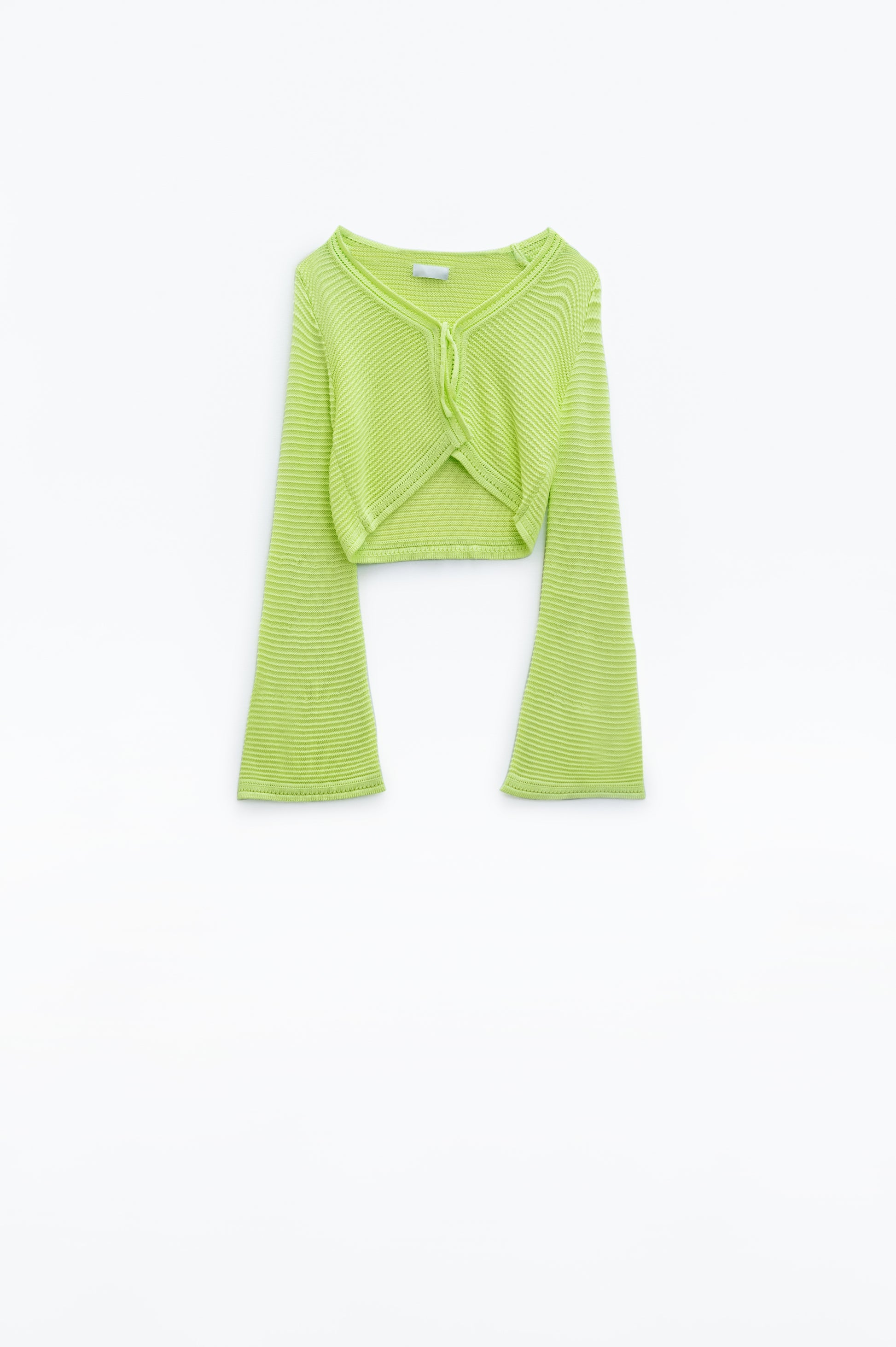Long Bell Sleeve Knitted Cardigan in Lime Green With knot detail