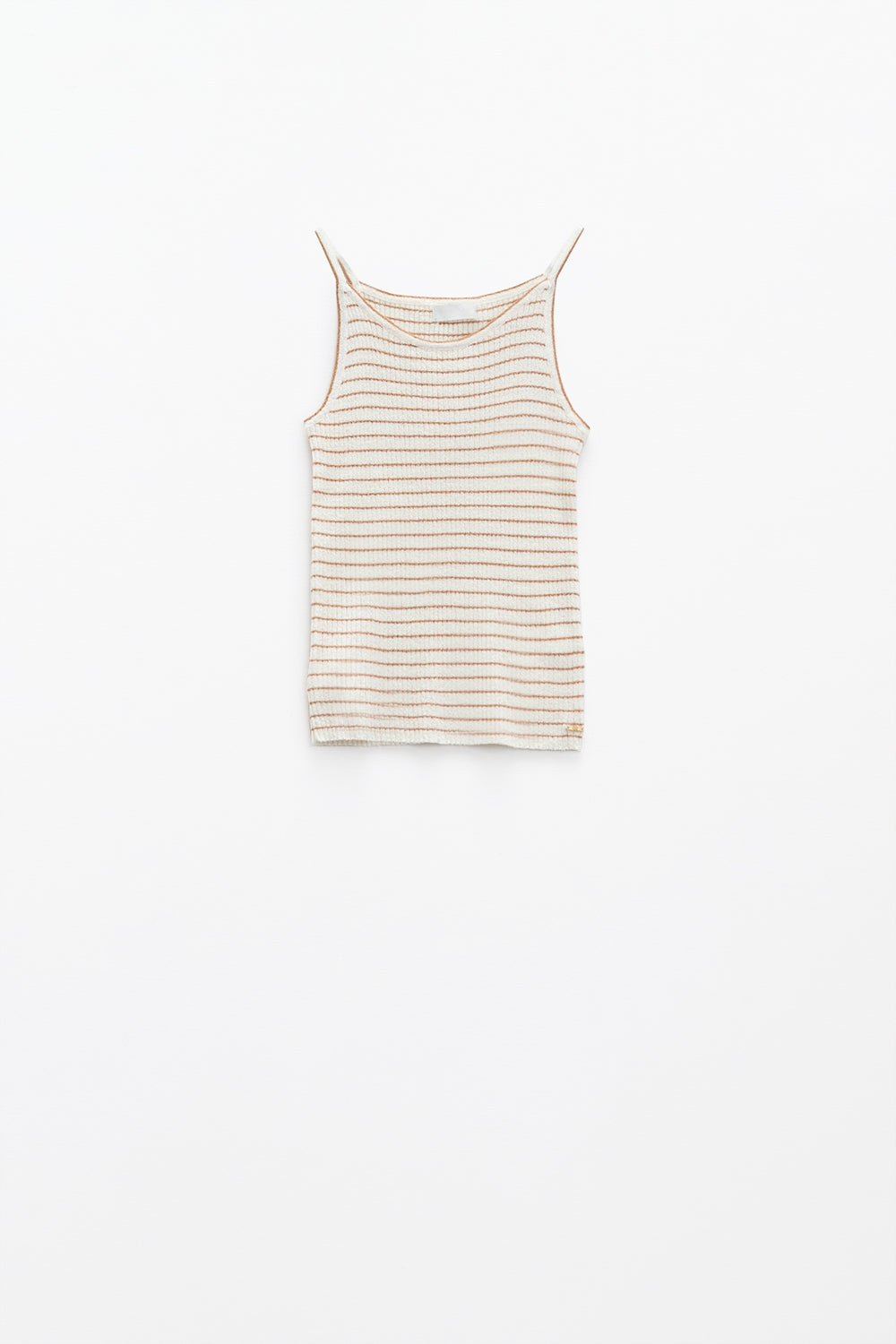 Subcategory: Top. Collar: Square Neckline. Sleeves: Sleeveless style. Print: Stripe design. Fit: Bodycon fit. Style: Daily. Fabric: Ribbed knit. runs small. S.