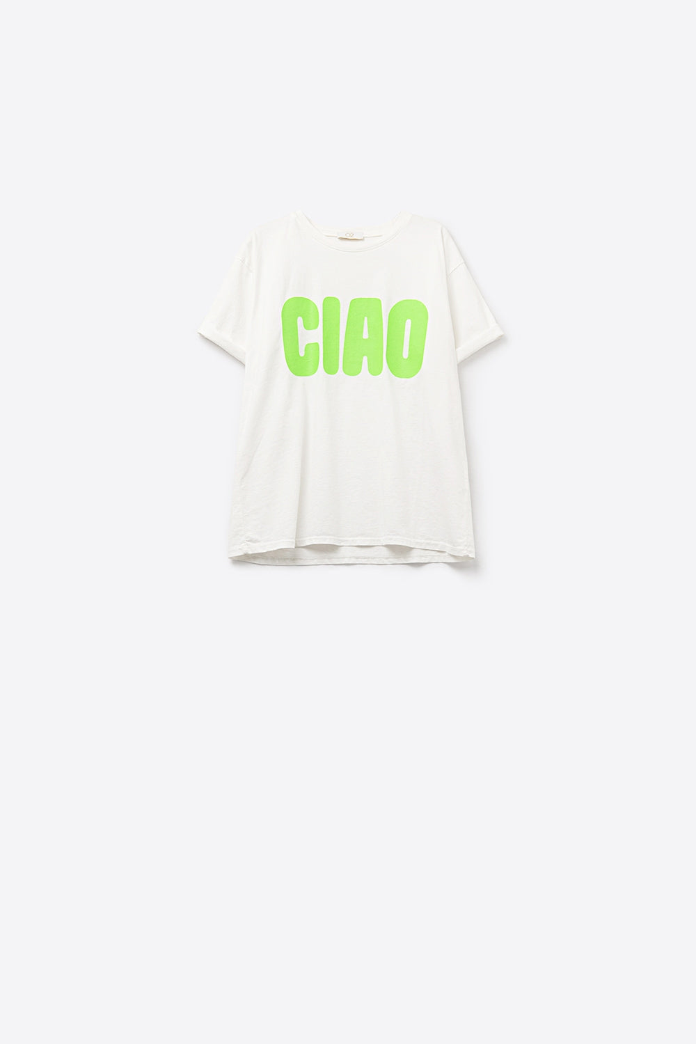 White Relaxed CIAO T-Shirt With Green Letters