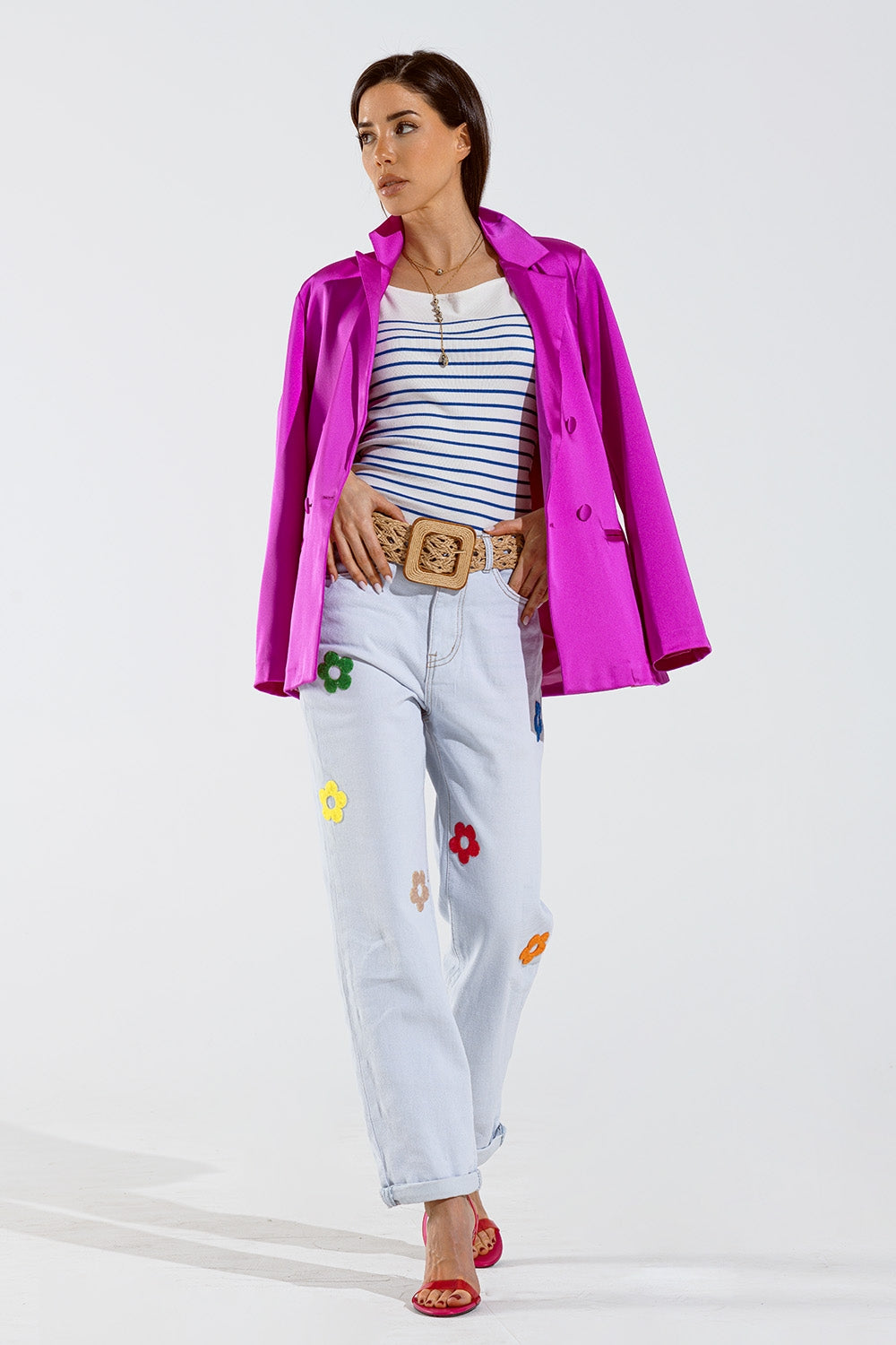 White top with blue stripes and thin straps