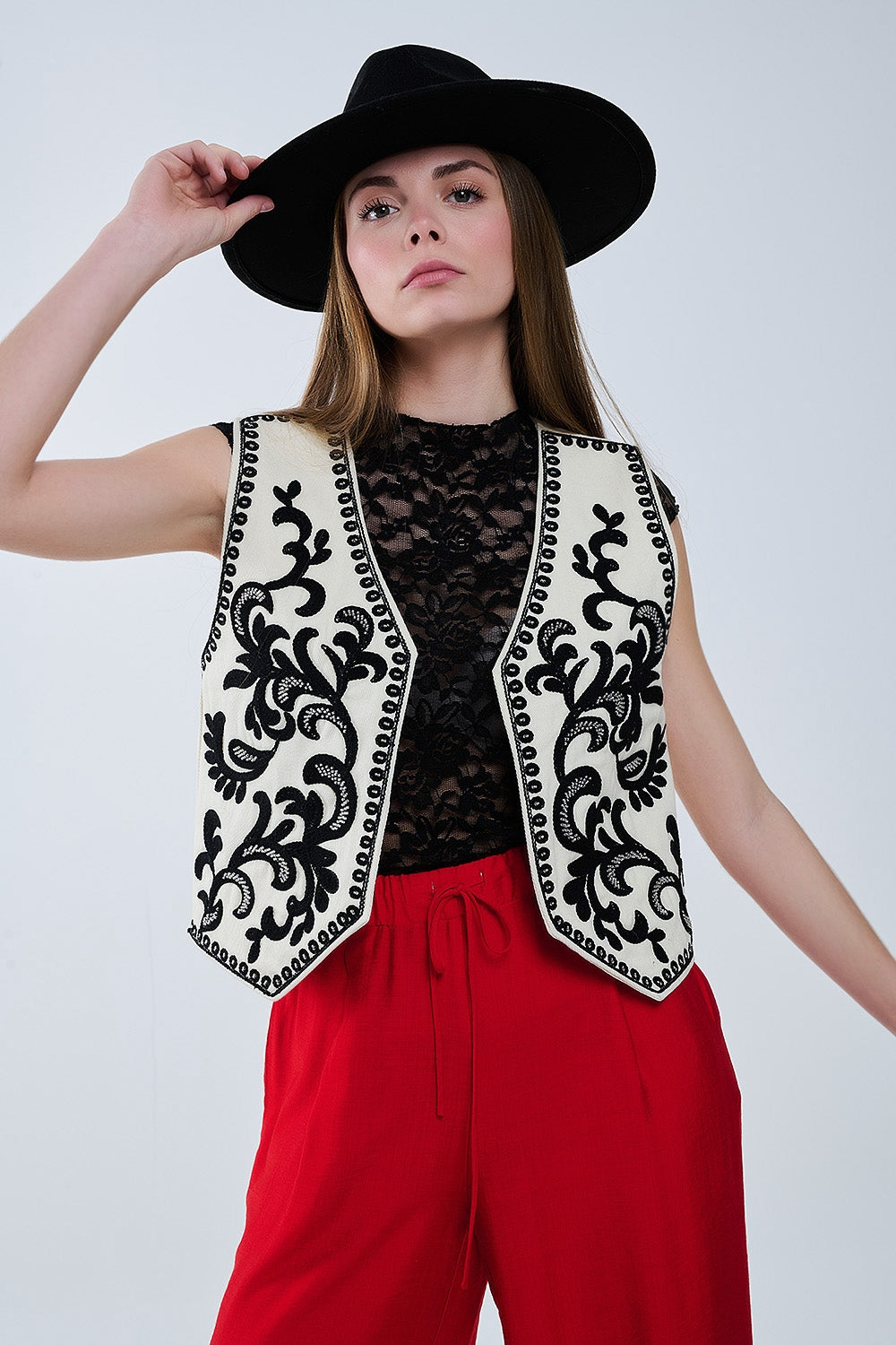 Length: Cropped length. Subcategory: Vest . Collar: V-neck neckline. Sleeves: Sleeveless style. Print: Abstract print . Fit: Relaxed fit. Style: Romantic. runs true to size. S.