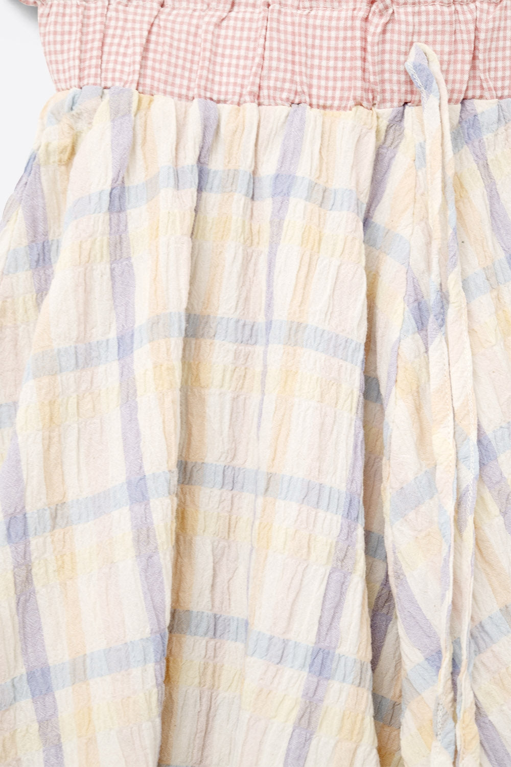 Calções fluido xadrez com cós com cordão multicolorido