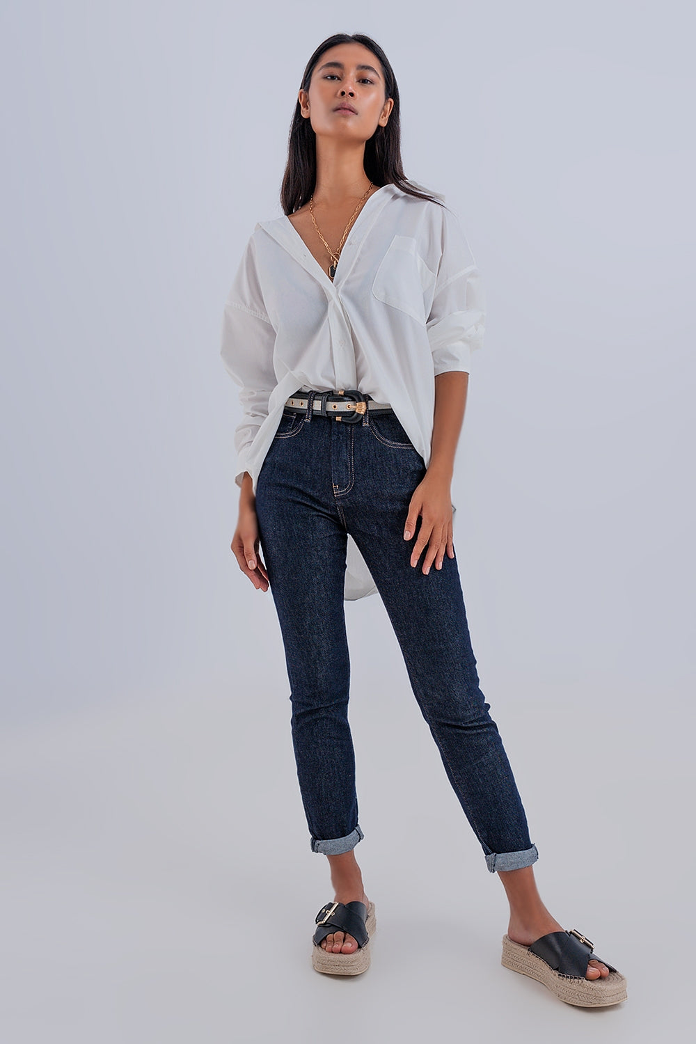 Subcategoria: Jeans. Caimento: Skinny. Perna: Skinny. Estilo: Casual. Tipo de jeans: Básico. Detalhe: Passadores para cinto. Tecido: Jeans com elastano. Bolsos: Cinco bolsos. Fecho de correr: Fecho de correr. Detalhes do produto: Bolsos funcionais. Cintura: Cinto não incluído. Tamanho real. P.
