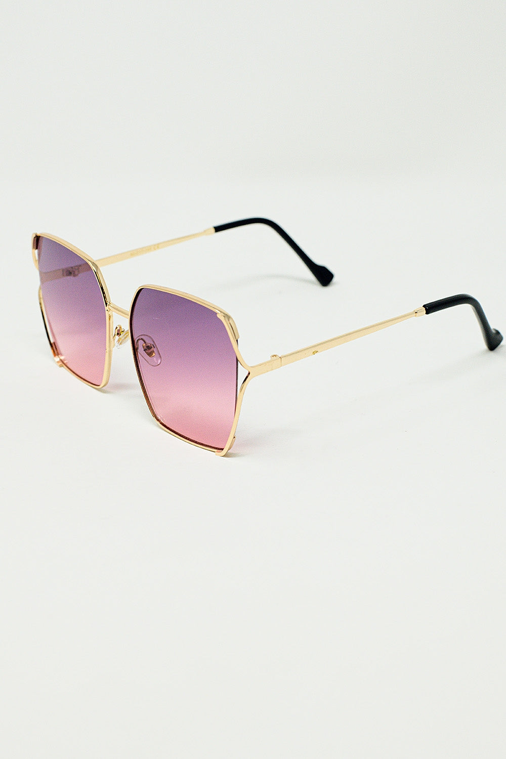 Óculos de sol quadrados grandes em metal com lentes degradé roxas