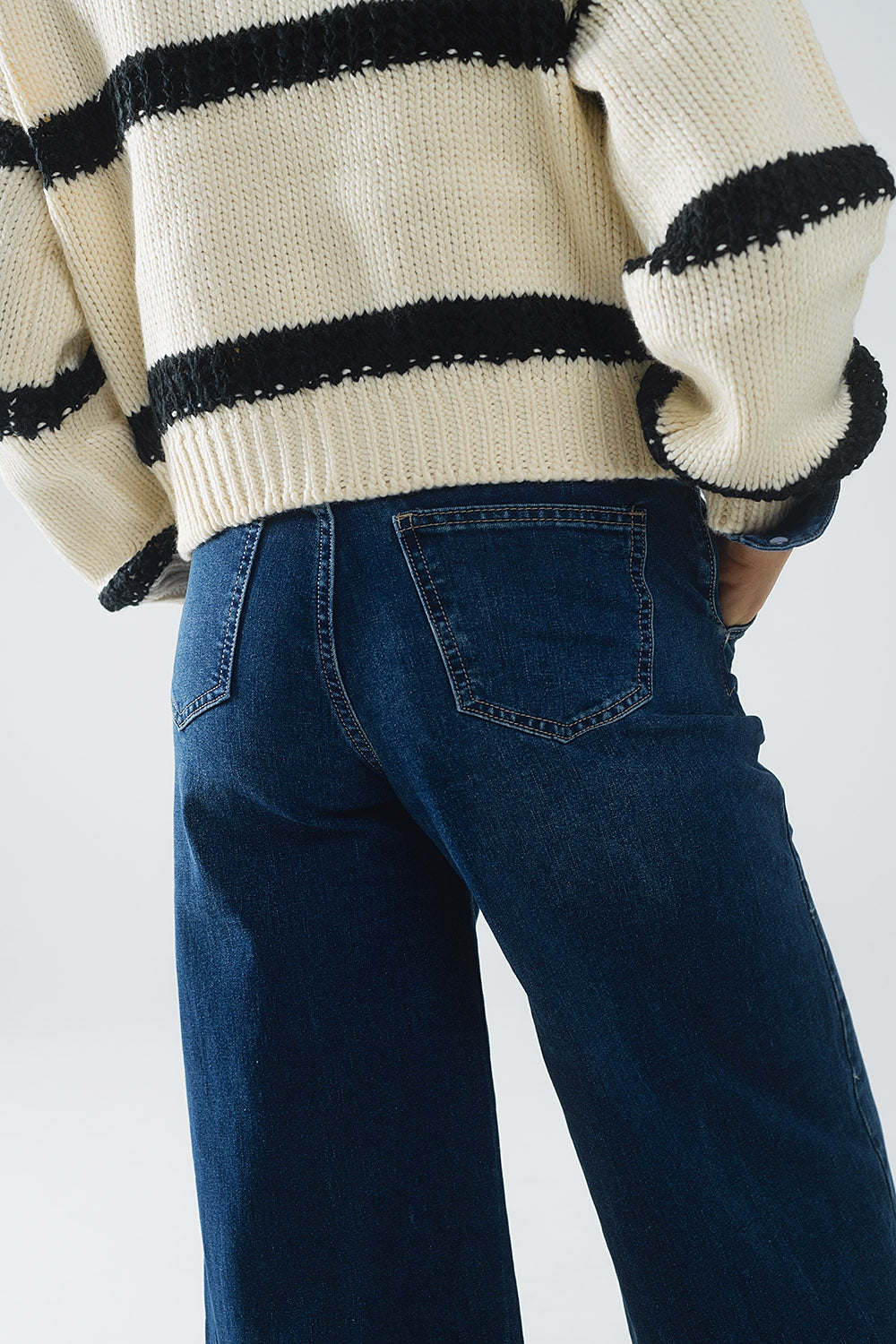 Comprimento: máx. Subcategoria: Jeans. Perna: Larga. Estilo: Diário. Tipo de jeans: Básico. Detalhe: Passadores de cinto. Tecido: Jeans com elastano. Bolsos: Cinco bolsos. Fecho de correr: Fecho de correr. Tamanho real. P.